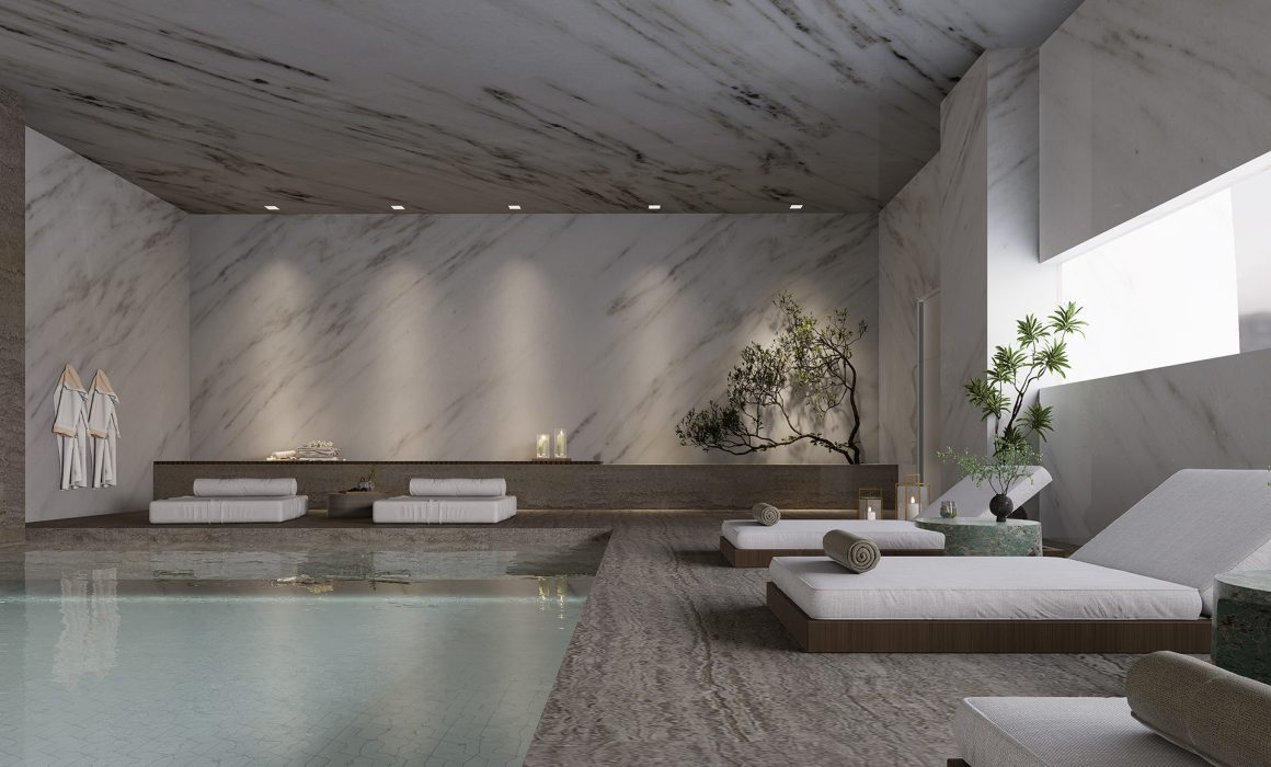 Materiality is defined by natural materials and warm tones, with wood, stone, and soft textiles forming the core of the palette. Earthy colors reinforce a sense of comfort, warmth, and timeless appeal.